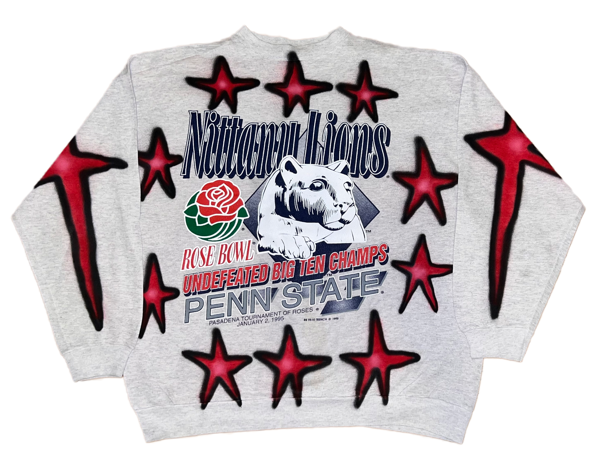 1of1 Airbrush Design on Thrifted Clothes MADE TO LAST. Size LARGE. TREAT LIKE ART. WEAR WITH CARE. COLD+MACHINE OR HAND WASH INSIDE OUT. TUMBLE DRY LOW OR HANG DRY.