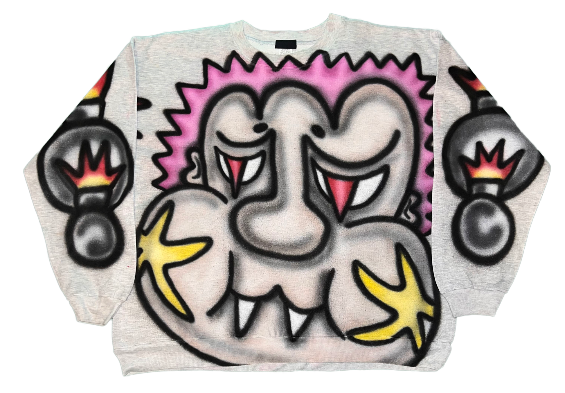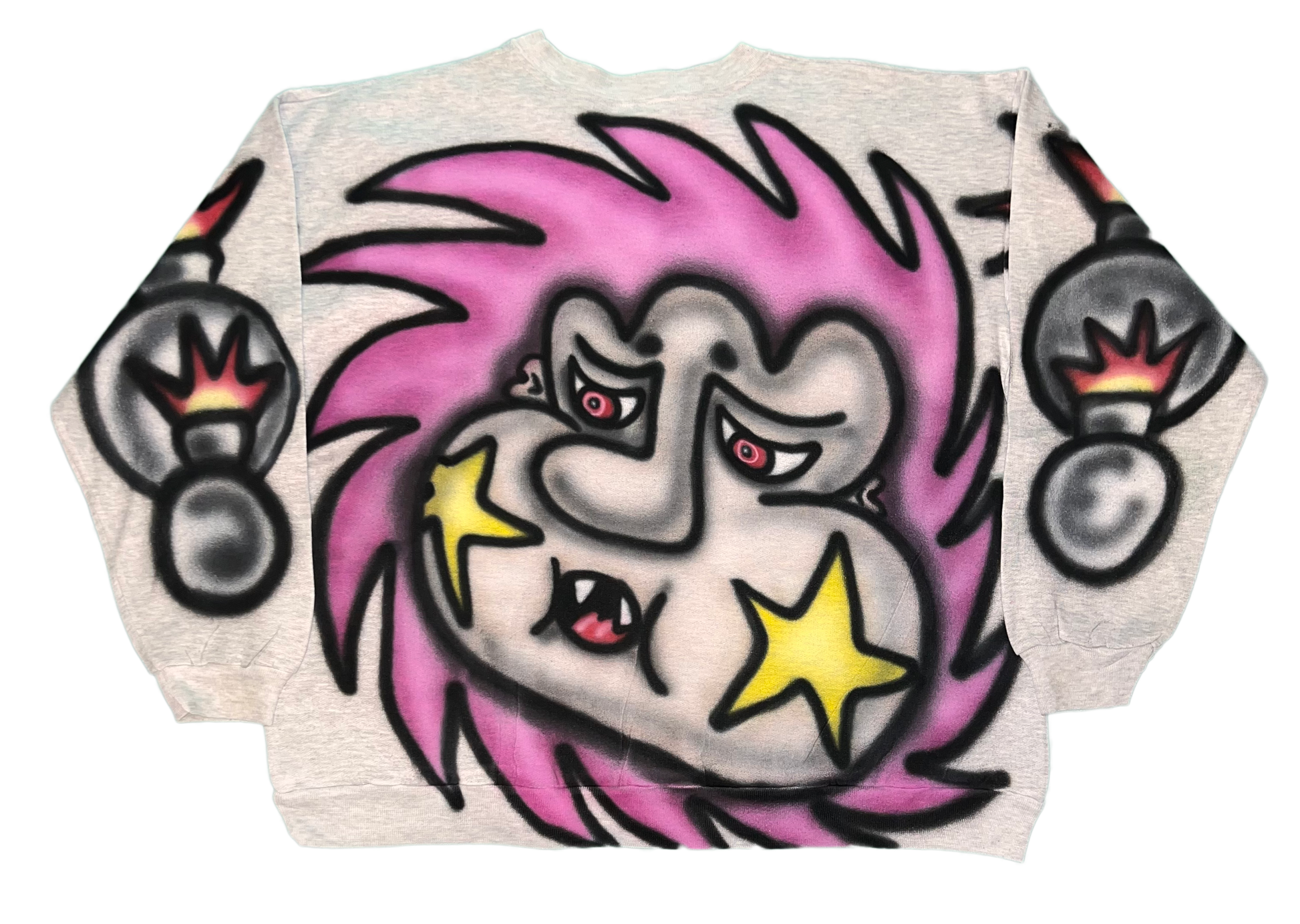 1of1 Airbrush Design on Thrifted Clothes MADE TO LAST. Size LARGE. TREAT LIKE ART. WEAR WITH CARE. COLD WATER LOW SETTINGS ON MACHINE OR HAND WASH INSIDE OUT. TUMBLE DRY LOW OR HANG DRY.