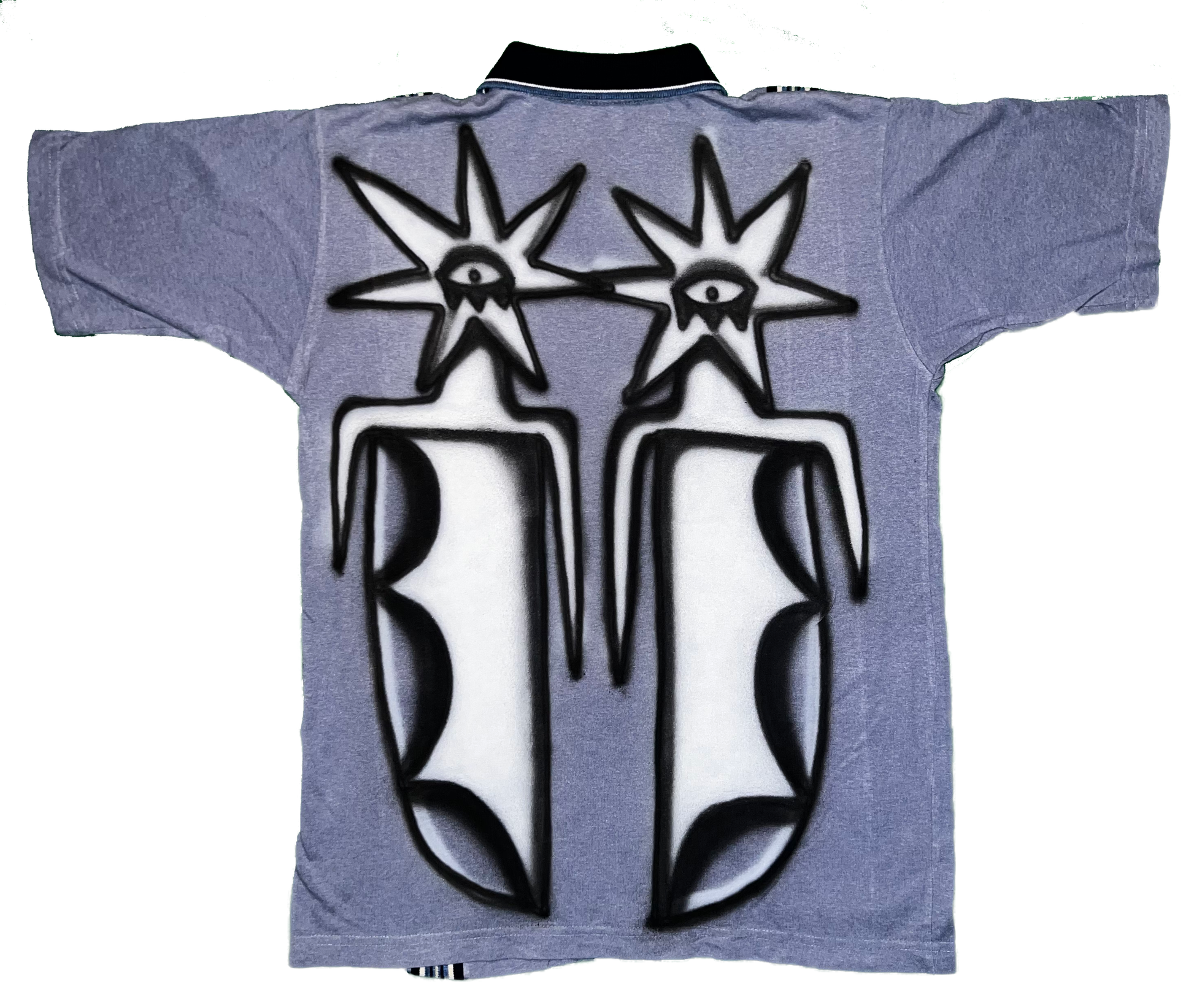 1of1 Airbrush Design on Thrifted Clothes MADE TO LAST. Size Large. TREAT LIKE ART. WEAR WITH CARE. LOW SETTINGS ON MACHINE+COLD WASH OR HAND WASH. TUMBLE DRY LOW OR HANG DRY.