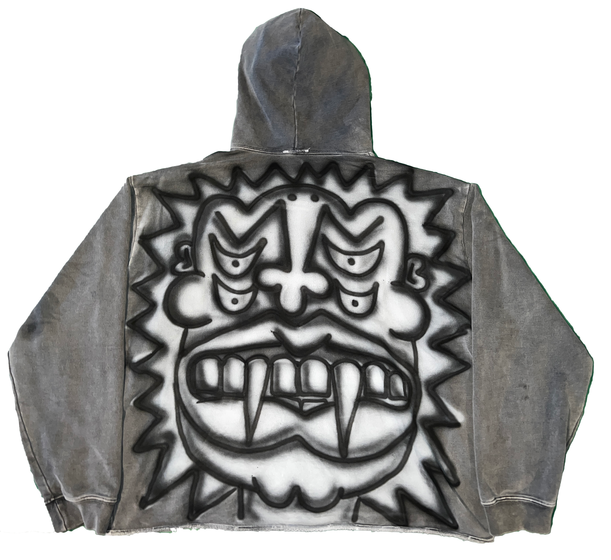 1of1 Airbrush Design on Thrifted Clothes MADE TO LAST. Size Large. TREAT LIKE ART. WEAR WITH CARE. HANDWASH WITH COLD WATER FOR BETTER RESULTS. LOW SETTINGS ON MACHINE WITH COLD WATER