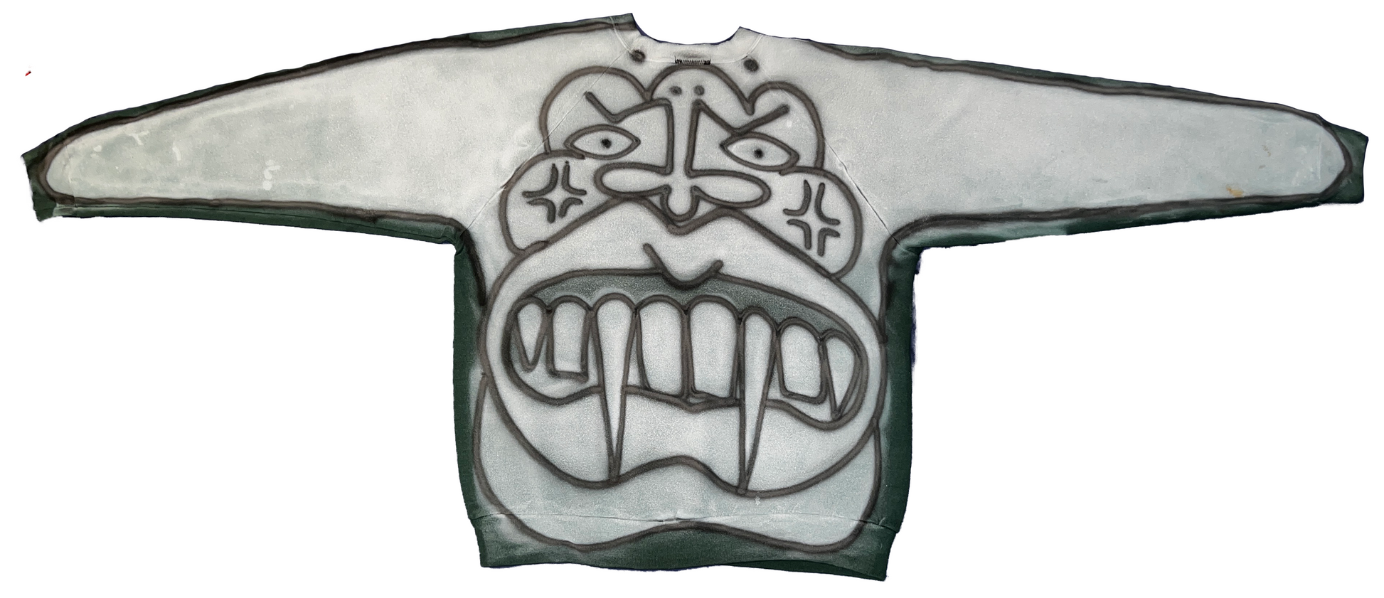 1of1 Airbrush Design on Thrifted Clothes MADE TO LAST. Size Large. TREAT LIKE ART. WEAR WITH CARE. HANDWASH WITH COLD WATER FOR BETTER RESULTS. LOW SETTINGS ON MACHINE WITH COLD WATER