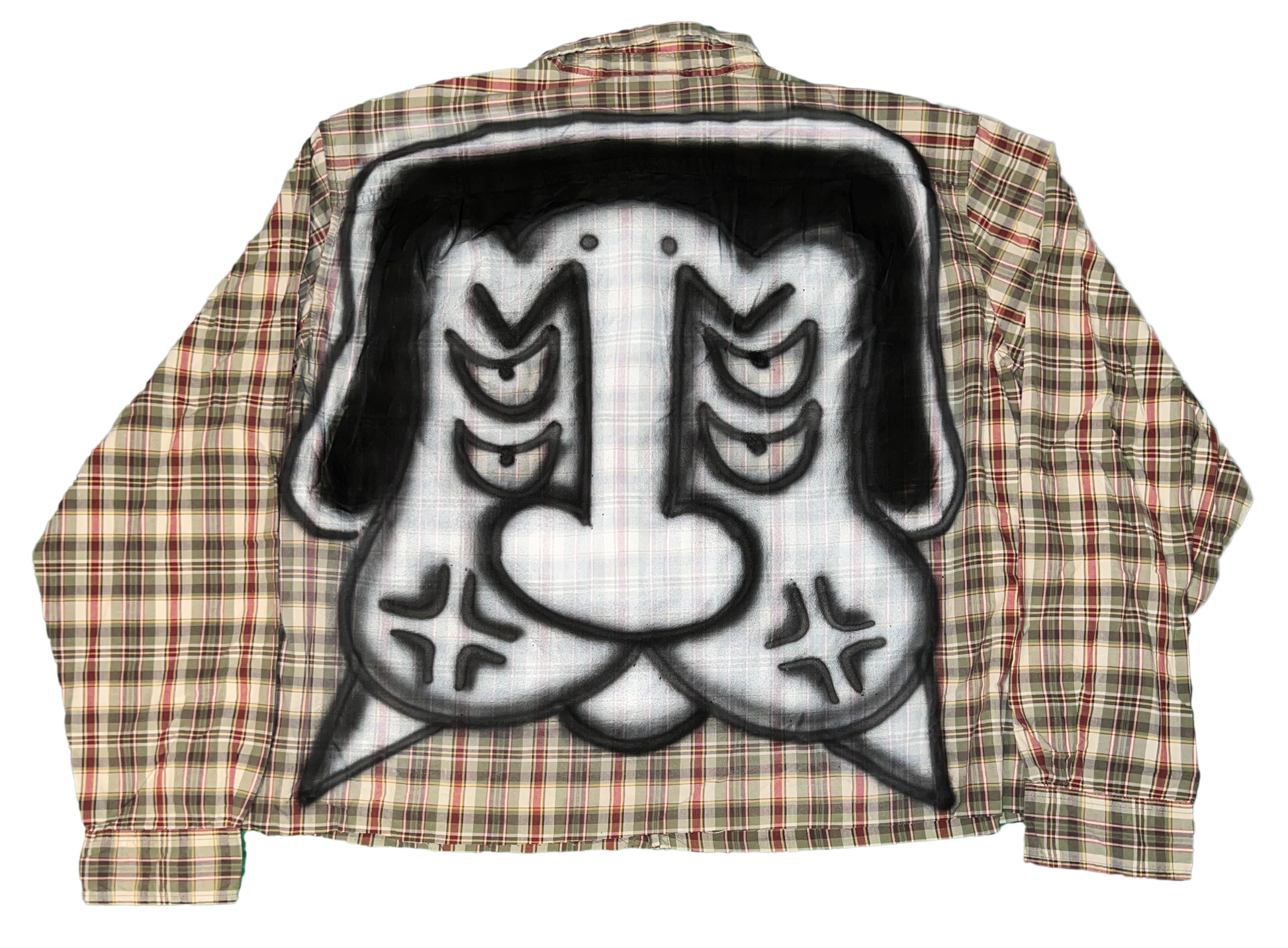 1of1 Airbrush Design on Thrifted Clothes MADE TO LAST. Size Large. TREAT LIKE ART. WEAR WITH CARE. HANDWASH WITH COLD WATER FOR BETTER RESULTS. LOW SETTINGS ON MACHINE WITH COLD WATER