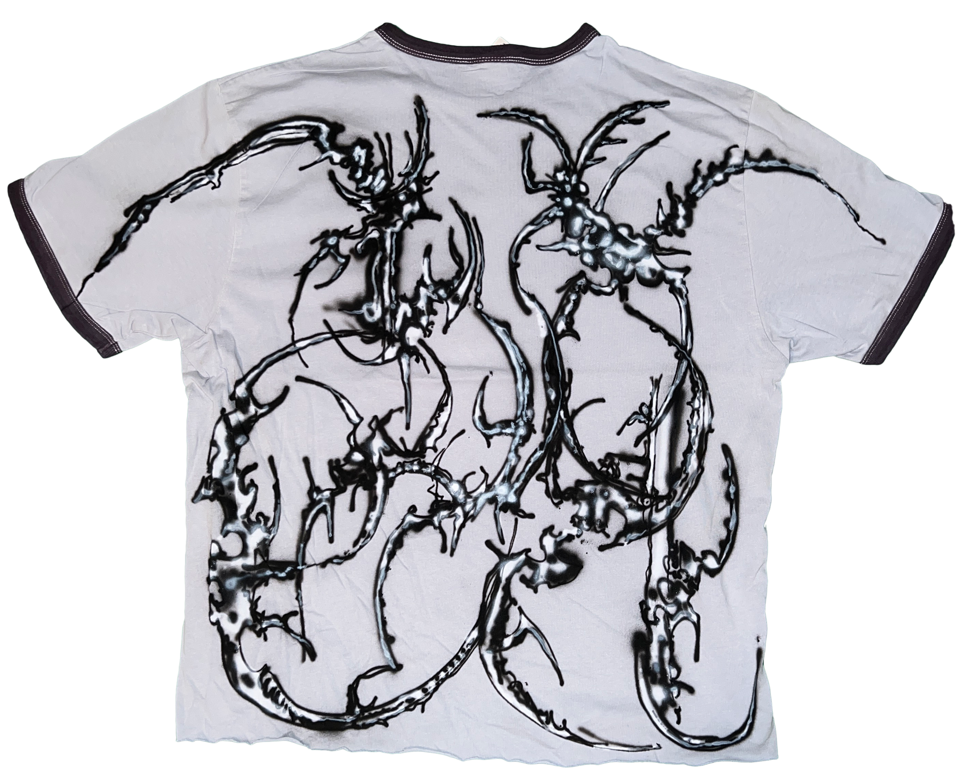 1of1 Airbrush Design on Thrifted Clothes MADE TO LAST. Size Large. TREAT LIKE ART. WEAR WITH CARE. HANDWASH WITH COLD WATER FOR BETTER RESULTS. LOW SETTINGS ON MACHINE WITH COLD WATER