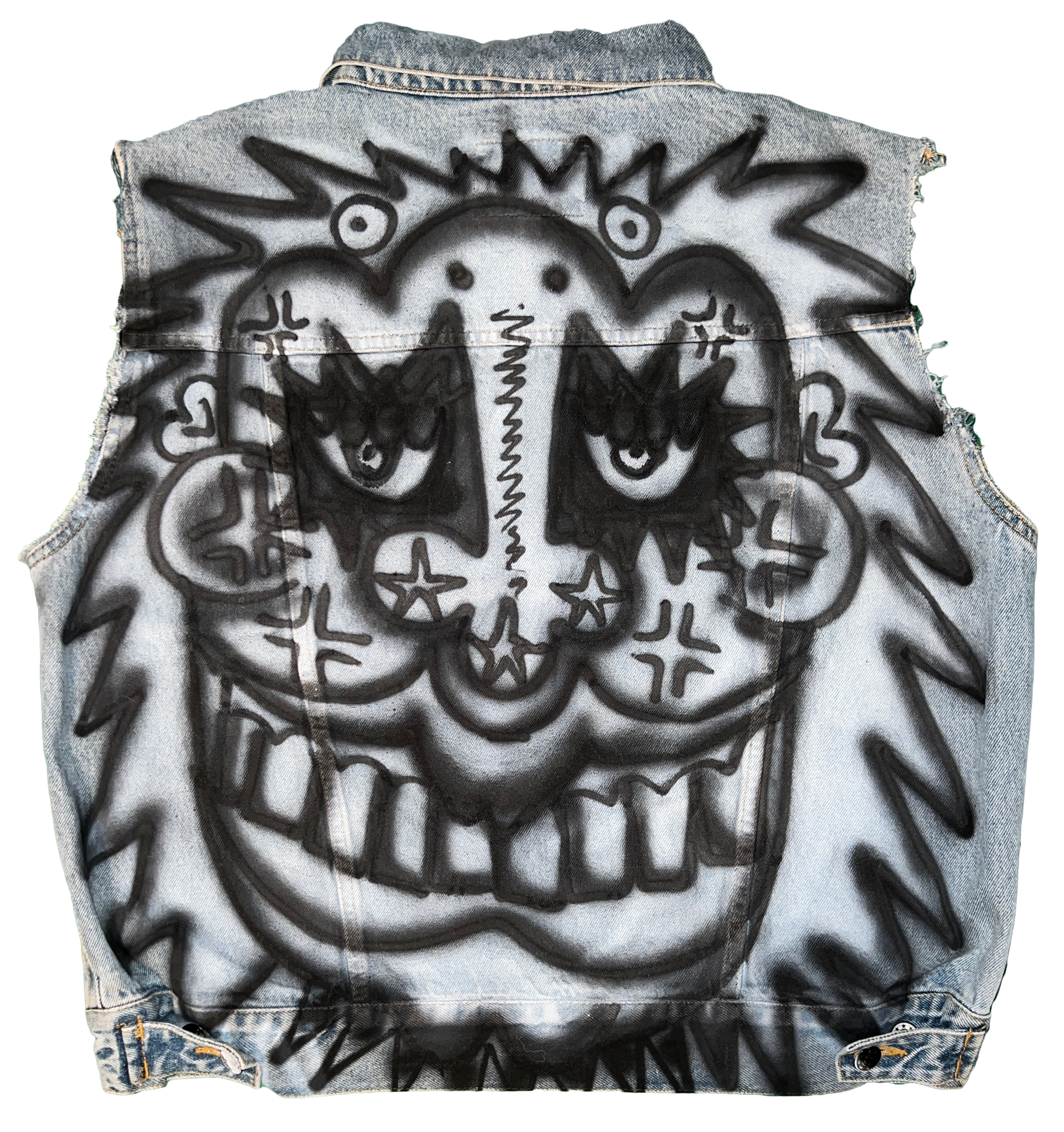 1of1 Airbrush Design on Thrifted Clothes MADE TO LAST. Size Medium. TREAT LIKE ART. WEAR WITH CARE. HANDWASH WITH COLD WATER FOR BETTER RESULTS. LOW SETTINGS ON MACHINE WITH COLD WATER