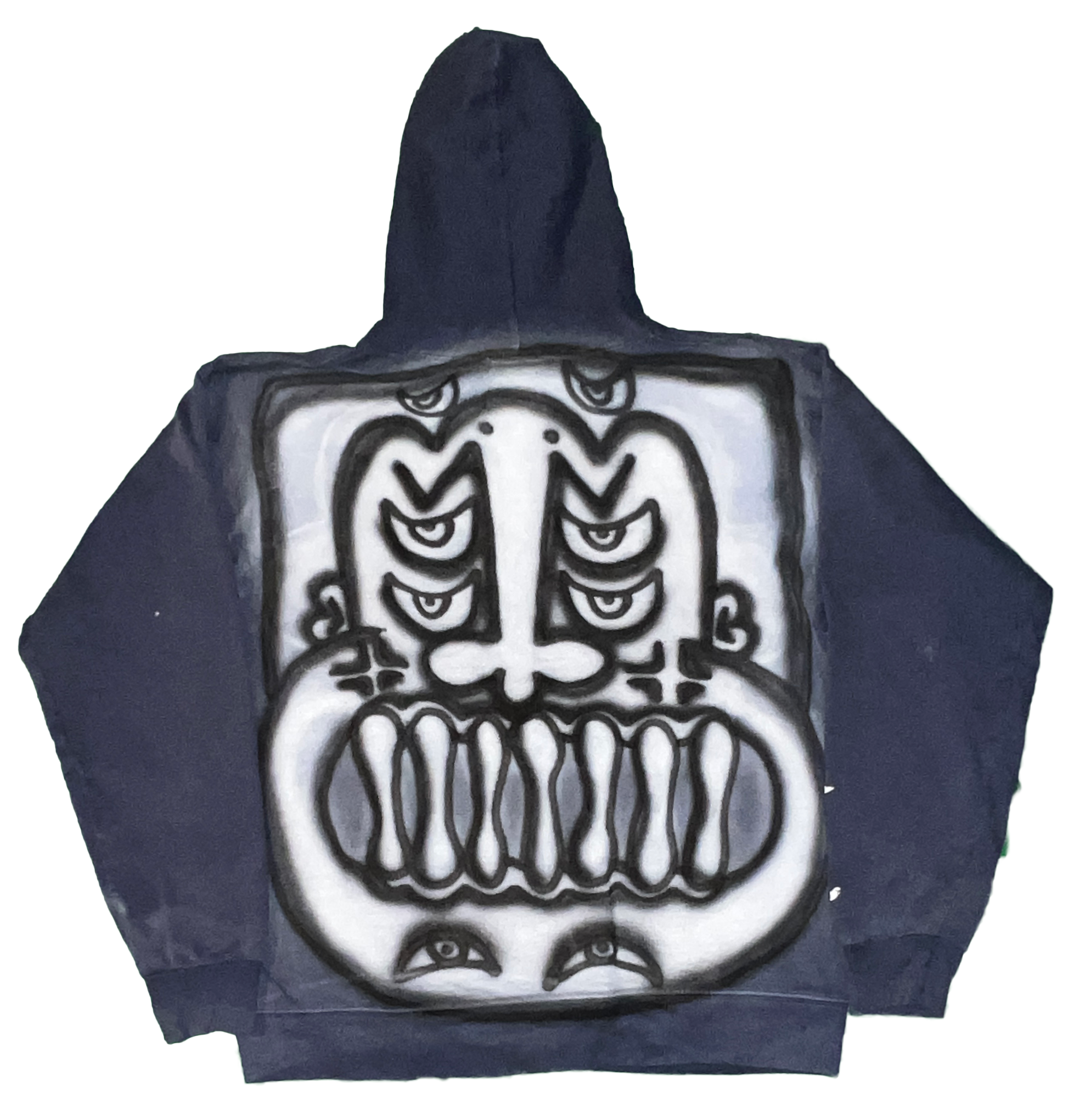 1of1 Airbrush Design on Thrifted Clothes MADE TO LAST. Size Medium. TREAT LIKE ART. WEAR WITH CARE. HANDWASH WITH COLD WATER FOR BETTER RESULTS. LOW SETTINGS ON MACHINE WITH COLD WATER