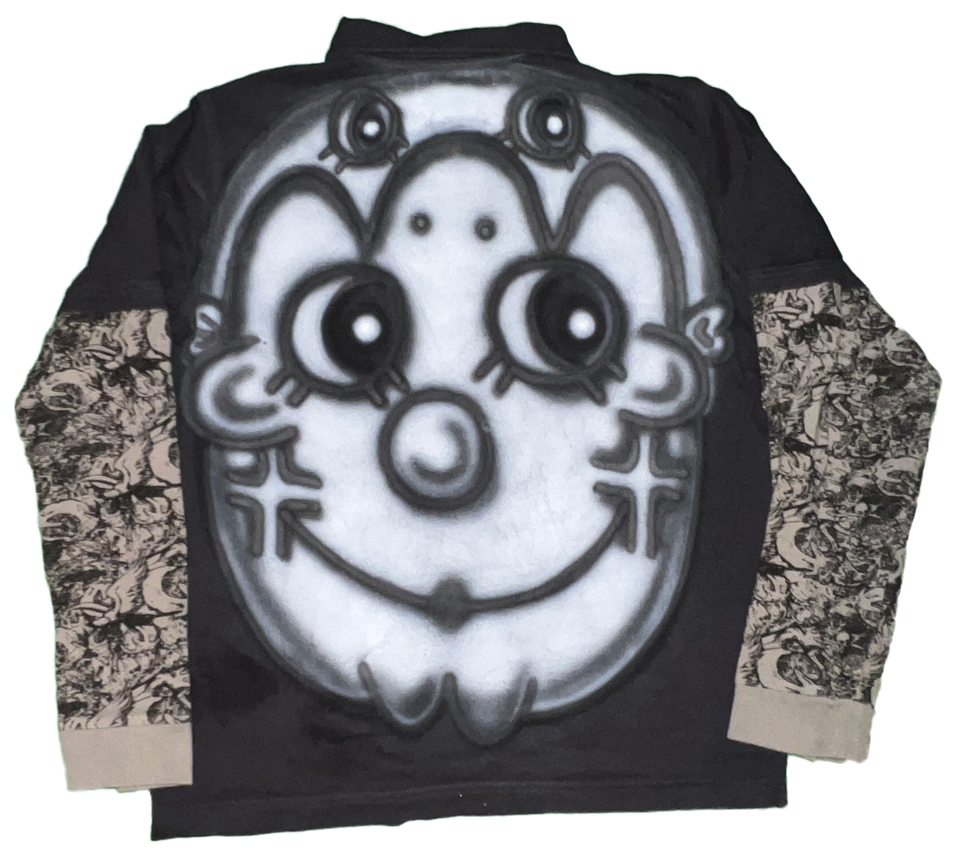 1of1 Airbrush Design on Thrifted Clothes MADE TO LAST. Size Medium. TREAT LIKE ART. WEAR WITH CARE. HANDWASH WITH COLD WATER FOR BETTER RESULTS. LOW SETTINGS ON MACHINE WITH COLD WATER