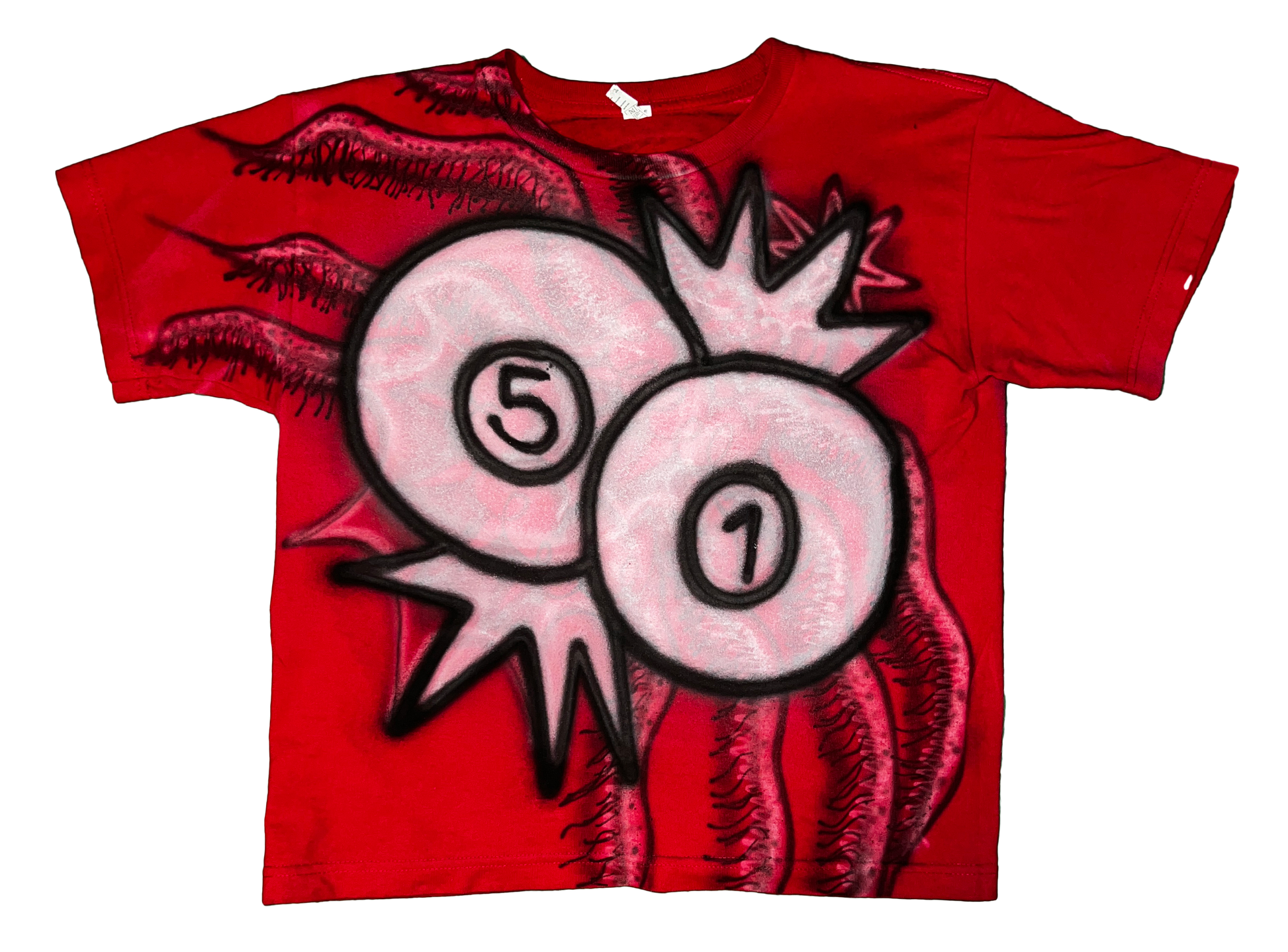 1of1 Airbrush Design on Thrifted Clothes MADE TO LAST. Size Small. TREAT LIKE ART. WEAR WITH CARE. HANDWASH WITH COLD WATER FOR BETTER RESULTS. LOW SETTINGS ON MACHINE WITH COLD WATER