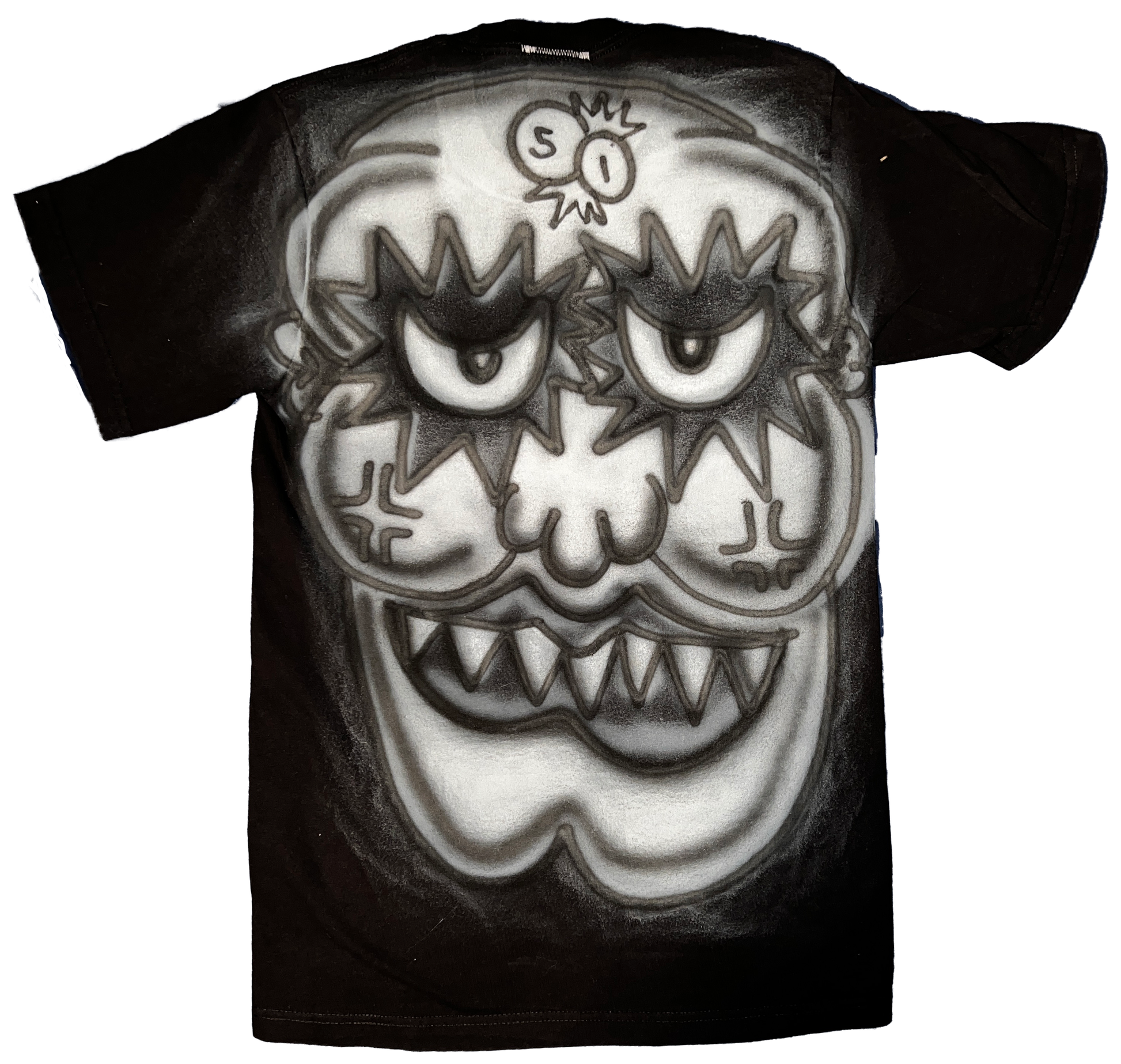 1of1 Airbrush Design on Thrifted Clothes MADE TO LAST. Size Small. TREAT LIKE ART. WEAR WITH CARE. HANDWASH WITH COLD WATER FOR BETTER RESULTS. LOW SETTINGS ON MACHINE WITH COLD WATER