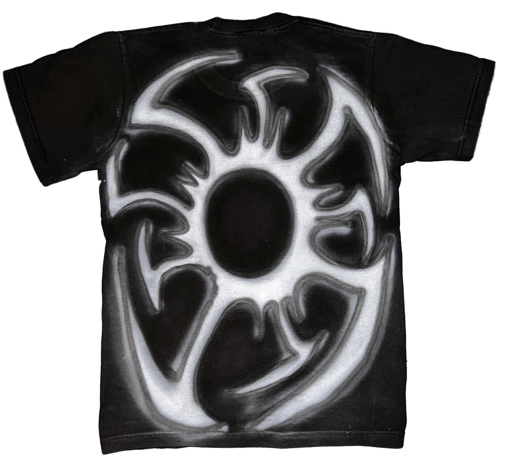 1of1 Airbrush Design on Thrifted Clothes MADE TO LAST. Size Small. TREAT LIKE ART. WEAR WITH CARE. HANDWASH WITH COLD WATER FOR BETTER RESULTS. LOW SETTINGS ON MACHINE WITH COLD WATER